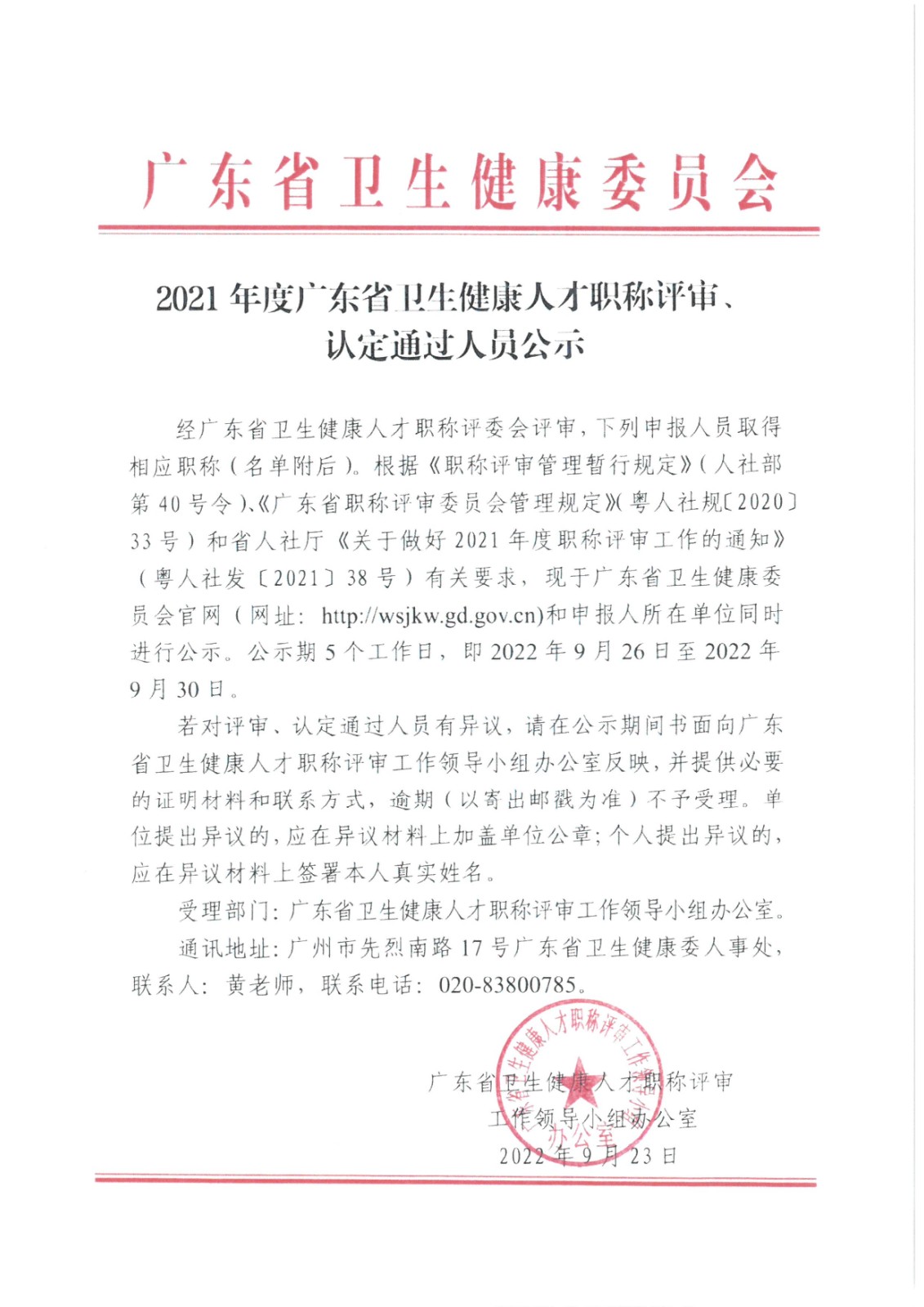 2021年度广东省卫生健康人才职称评审、认定通过人员公示